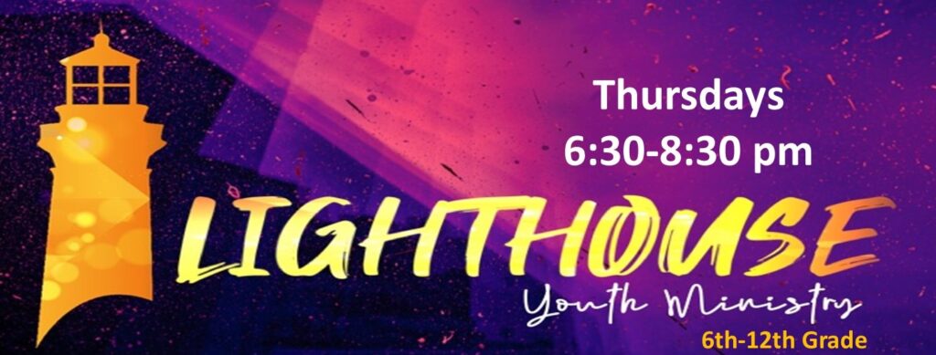Lighthouse meets every Thursday @6:30 and follows the school schedule. If there is no school, or if after school activities are cancelled due to weather, then Lighthouse will not meet either.