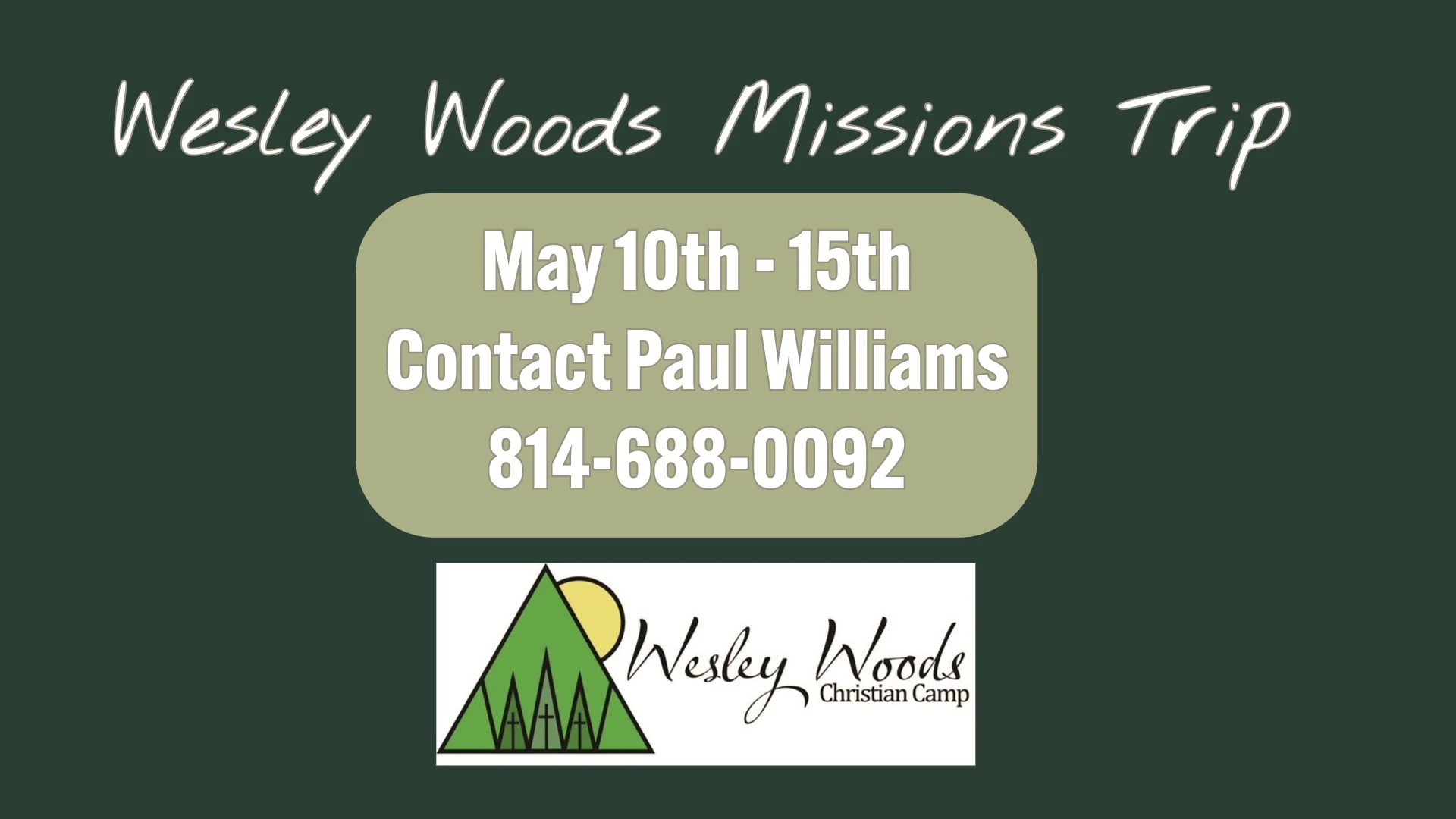 Contact Paul Williams for more information on this local mission trip opportunity!